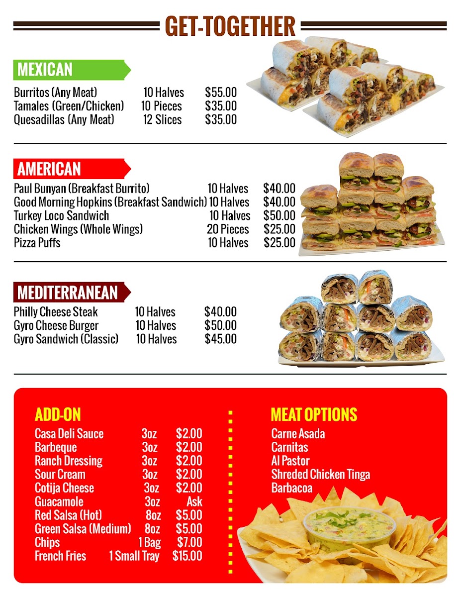 Welcome to Casa Deli, a hidden gem nestled in the heart of Hopkins, Minnesota. Located at 720 11th Ave S, this vibrant eatery is renowned for its fusion of authentic Mexican and American flavors, as well as Mediterranean delights that cater to diverse palates. The warm and inviting atmosphere of Casa Deli is perfect for allowing guests to savor some truly delicious bites, whether you choose to dine in or grab a meal to go.